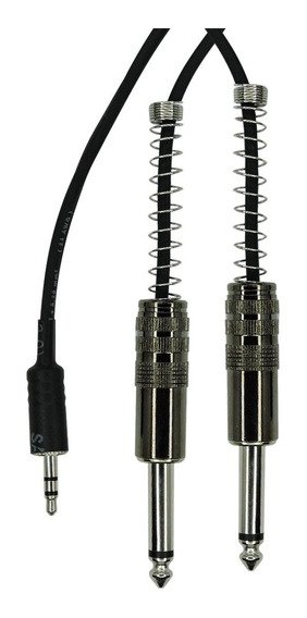 Cabo montado com 01 Plug P2 Estéreo (conector de 3,5 mm TRS macho) + 2 Plugs P10 (conectores 6,5 mm TS macho)
